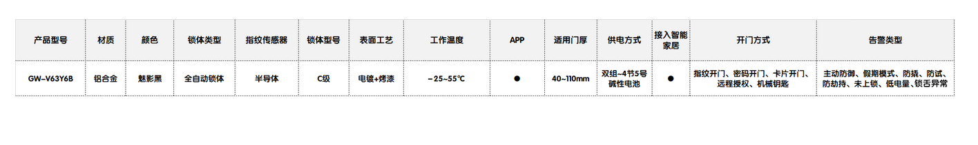 乐鱼智能锁V63产品参数: