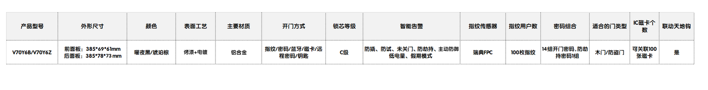 乐鱼智能锁V70产品参数: