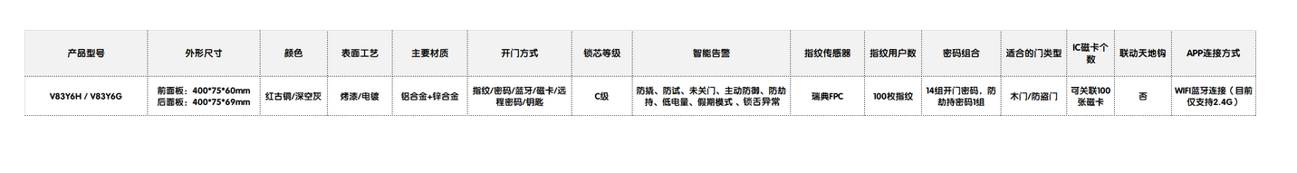 乐鱼智能锁V83产品参数: