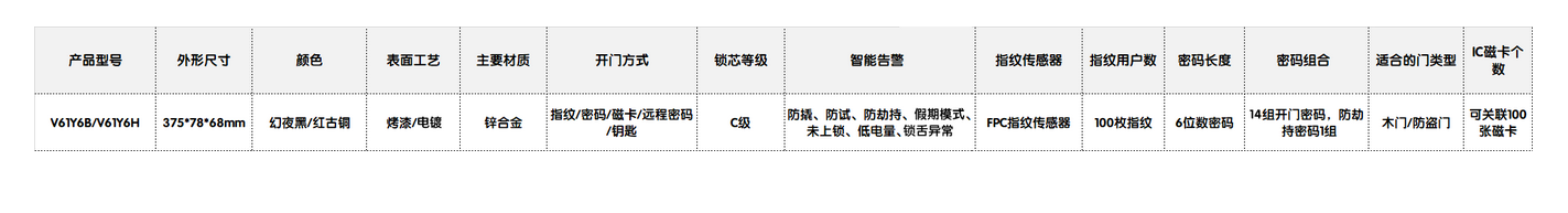 乐鱼智能锁V61产品参数: